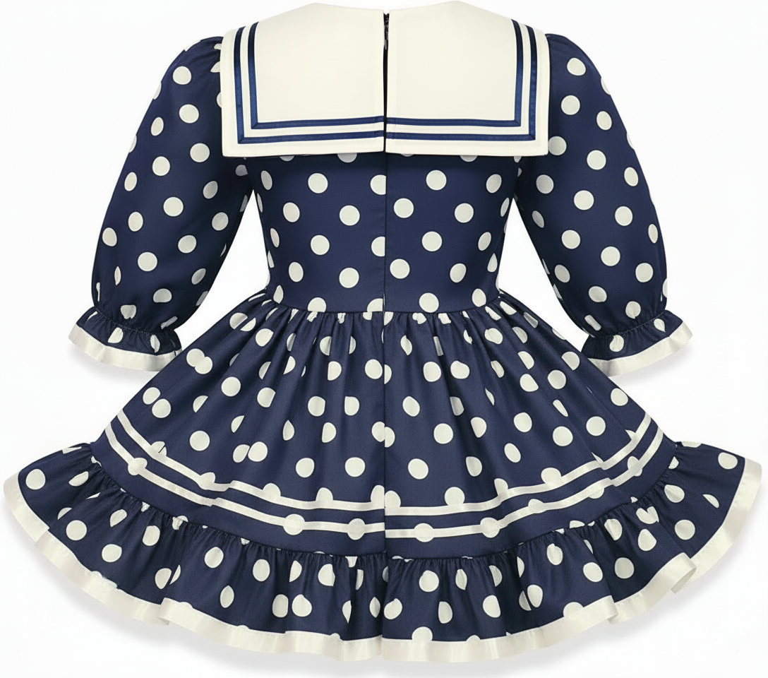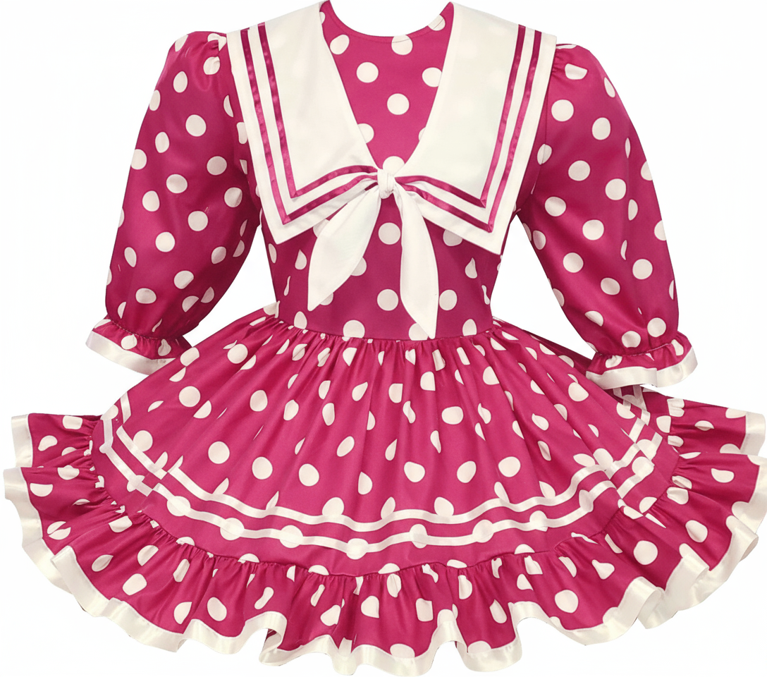 *Full gathered skirt trimmed with white ribbon and a skirt ruffle