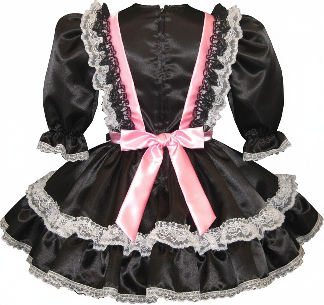 Abagail Custom Fit Black & Pink Satin Maid Adult Little Girl Sissy Dress by Leanne's