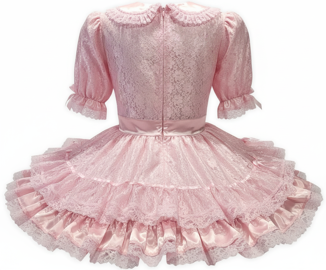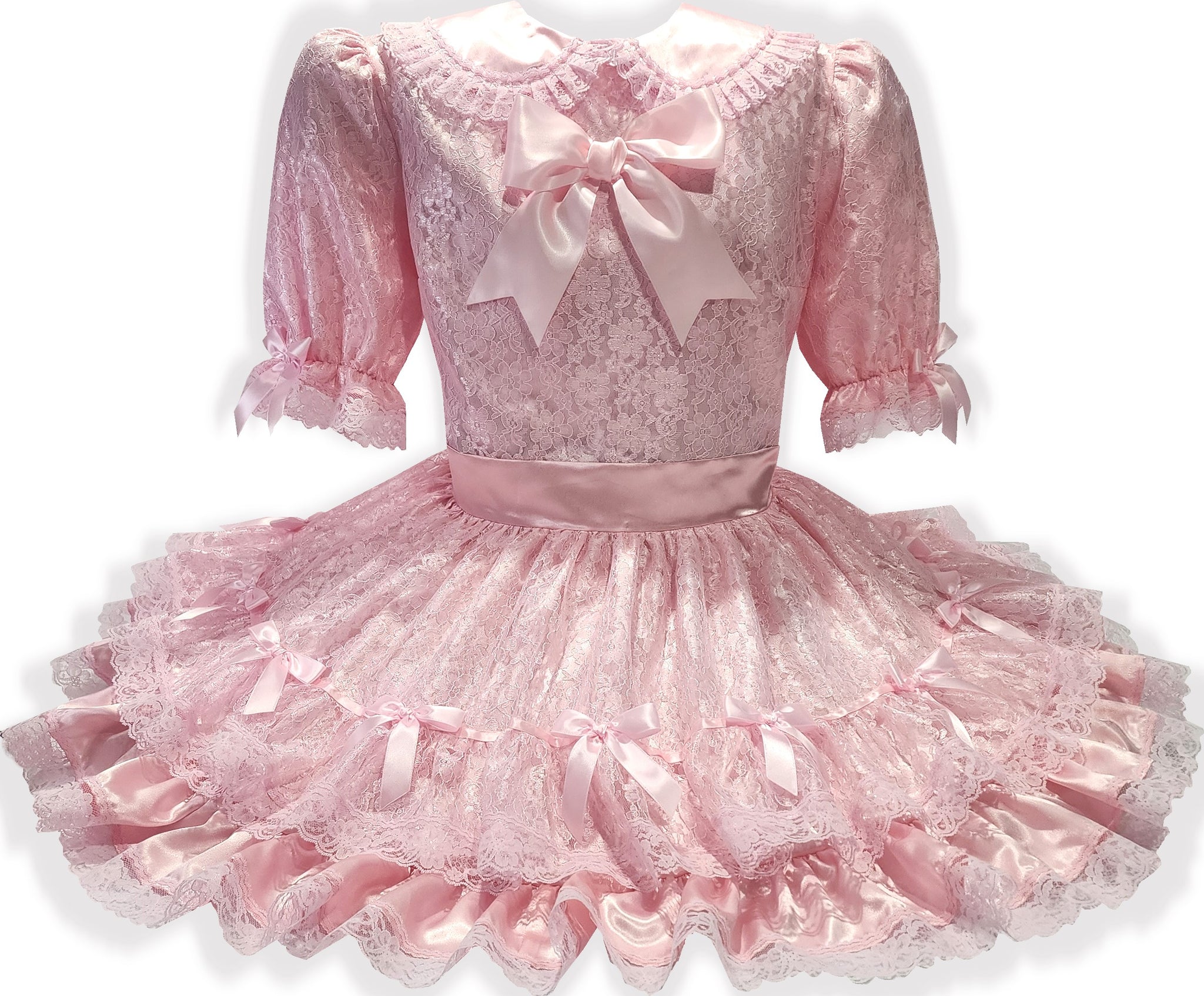 *Gathered skirt with lace overlay trimmed with ribbon and pink bows