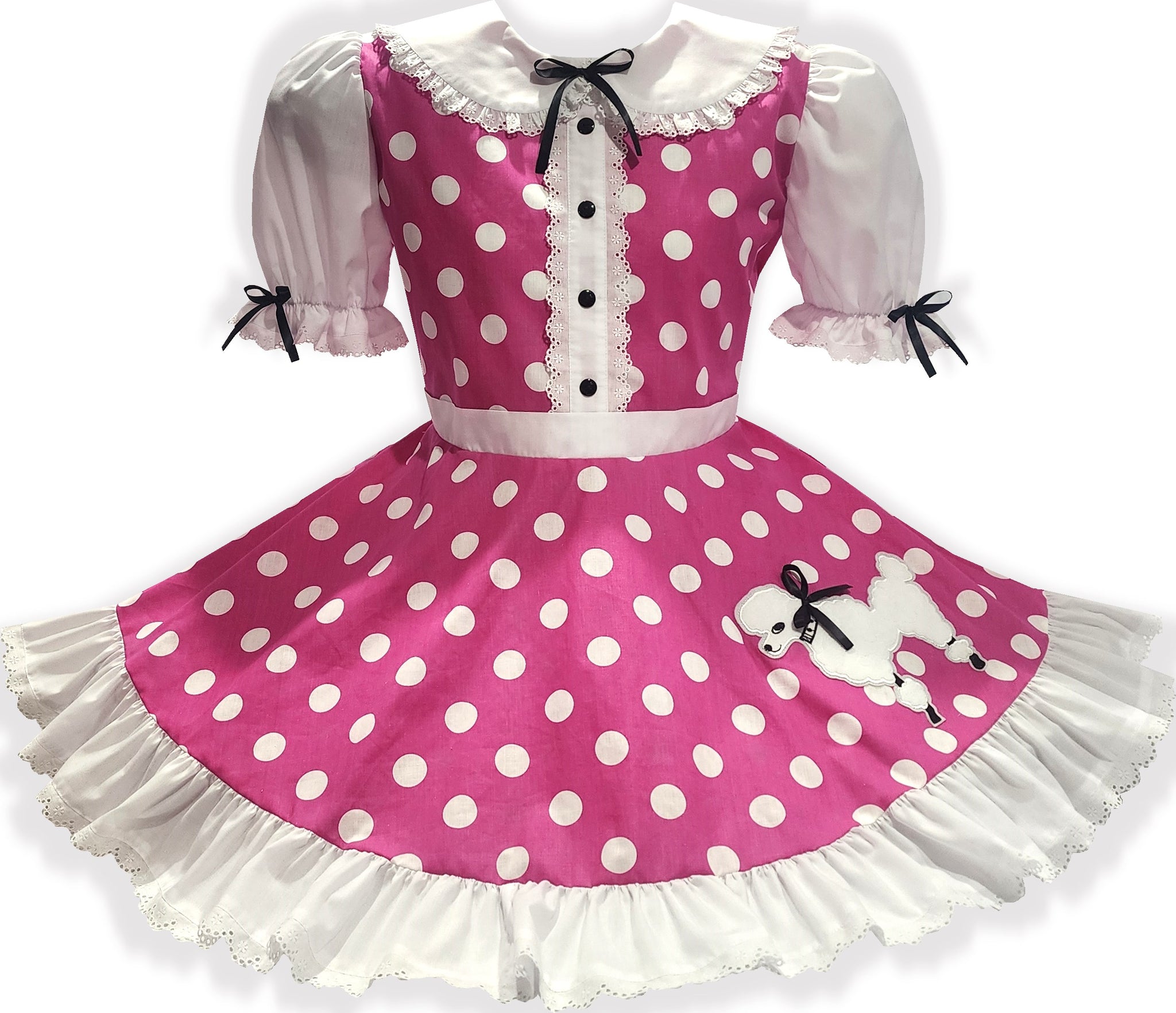 Custom Fit Pink White Polka Dots Poodle Skirt Adult Sissy Dress by Leanne's