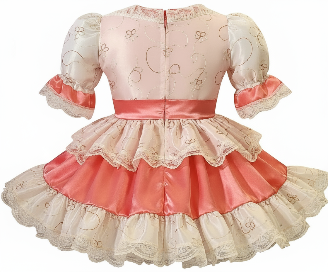 Desdimona Custom Fit Coral Satin Embroidered Sequin Taffeta Adult Sissy Dress by Leanne's