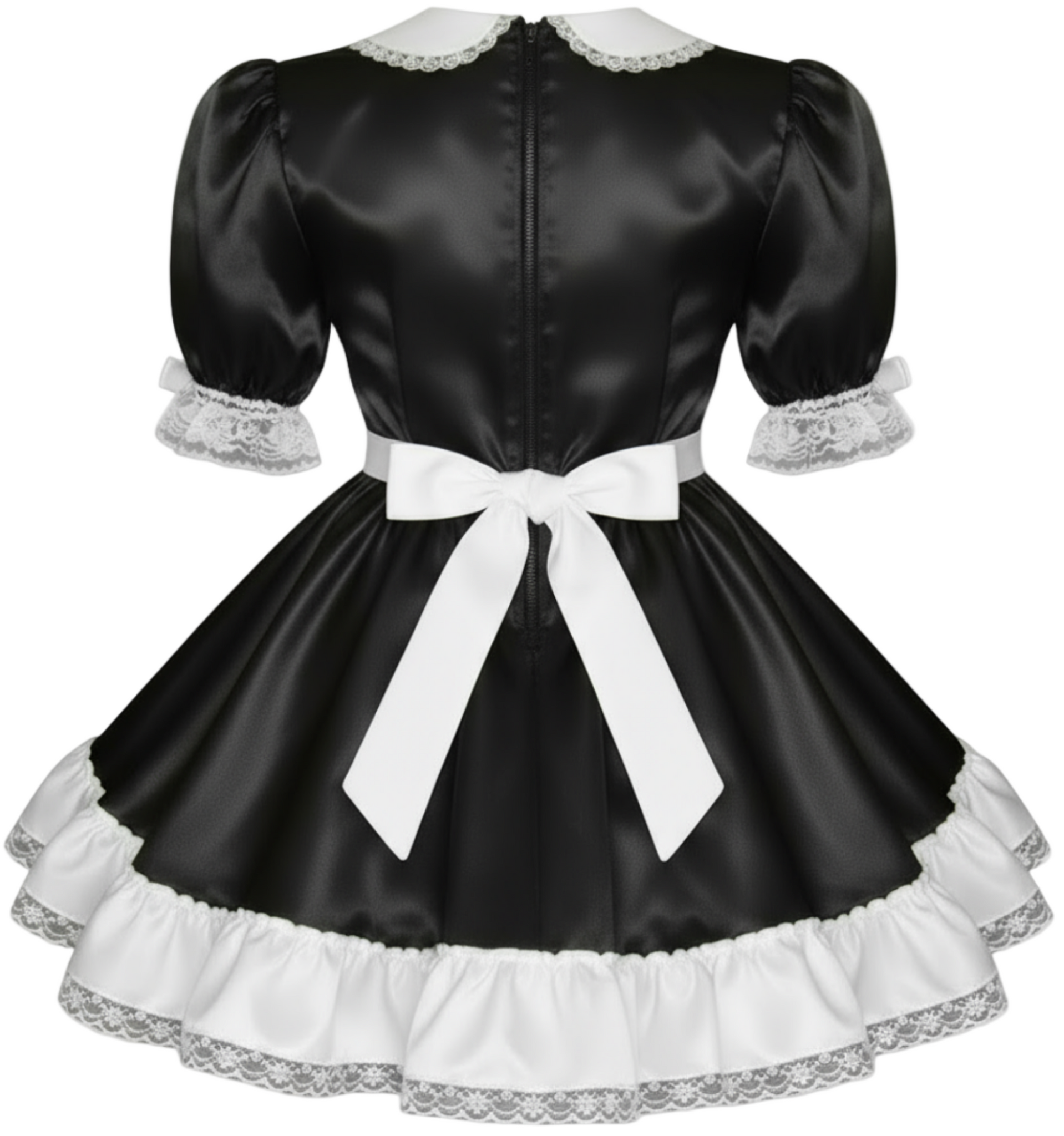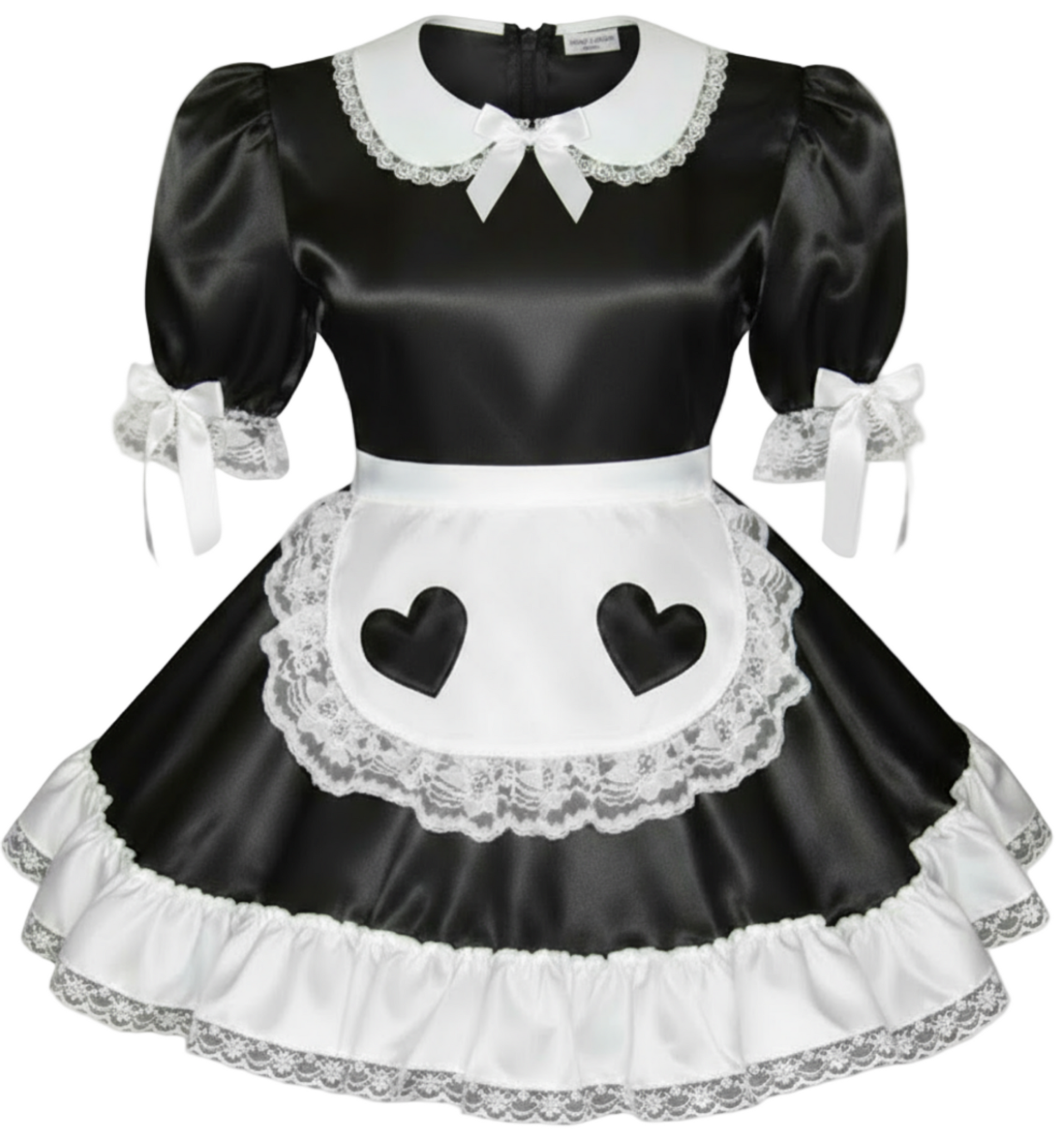 Shannon Custom Fit Black Satin French Maid Adult Sissy Dress by Leanne's