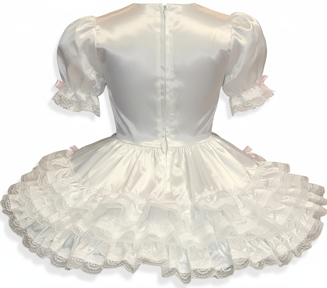 *Trimmed with white lace and a string of pink satin ribbon bows