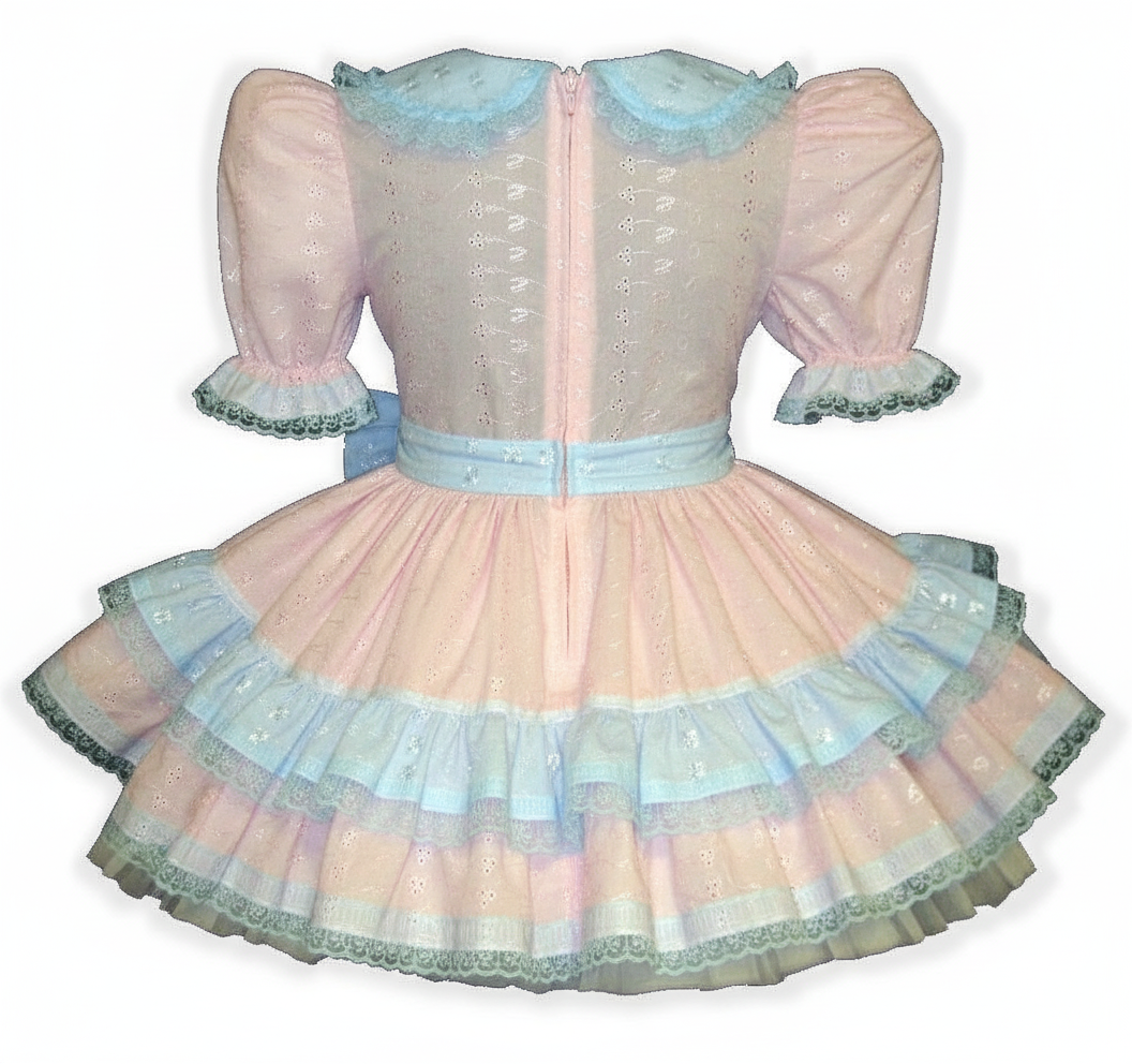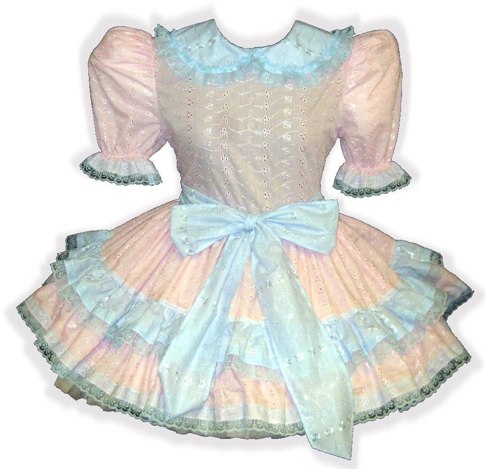 Paula CUSTOM FIT Pink Blue Eyelet Adult Little Girl Sissy Dress & Sash LEANNE