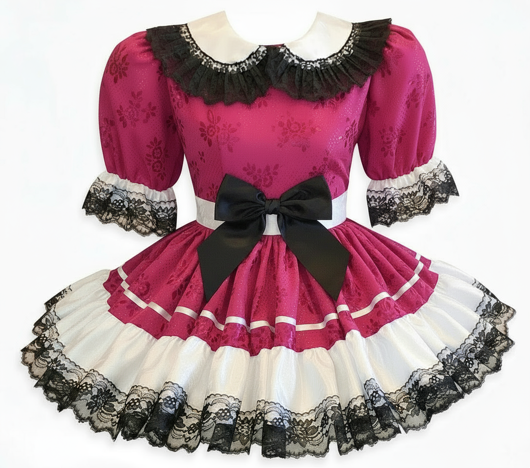 *Trimmed with black lace, white satin ribbon, and a white ribbon bow