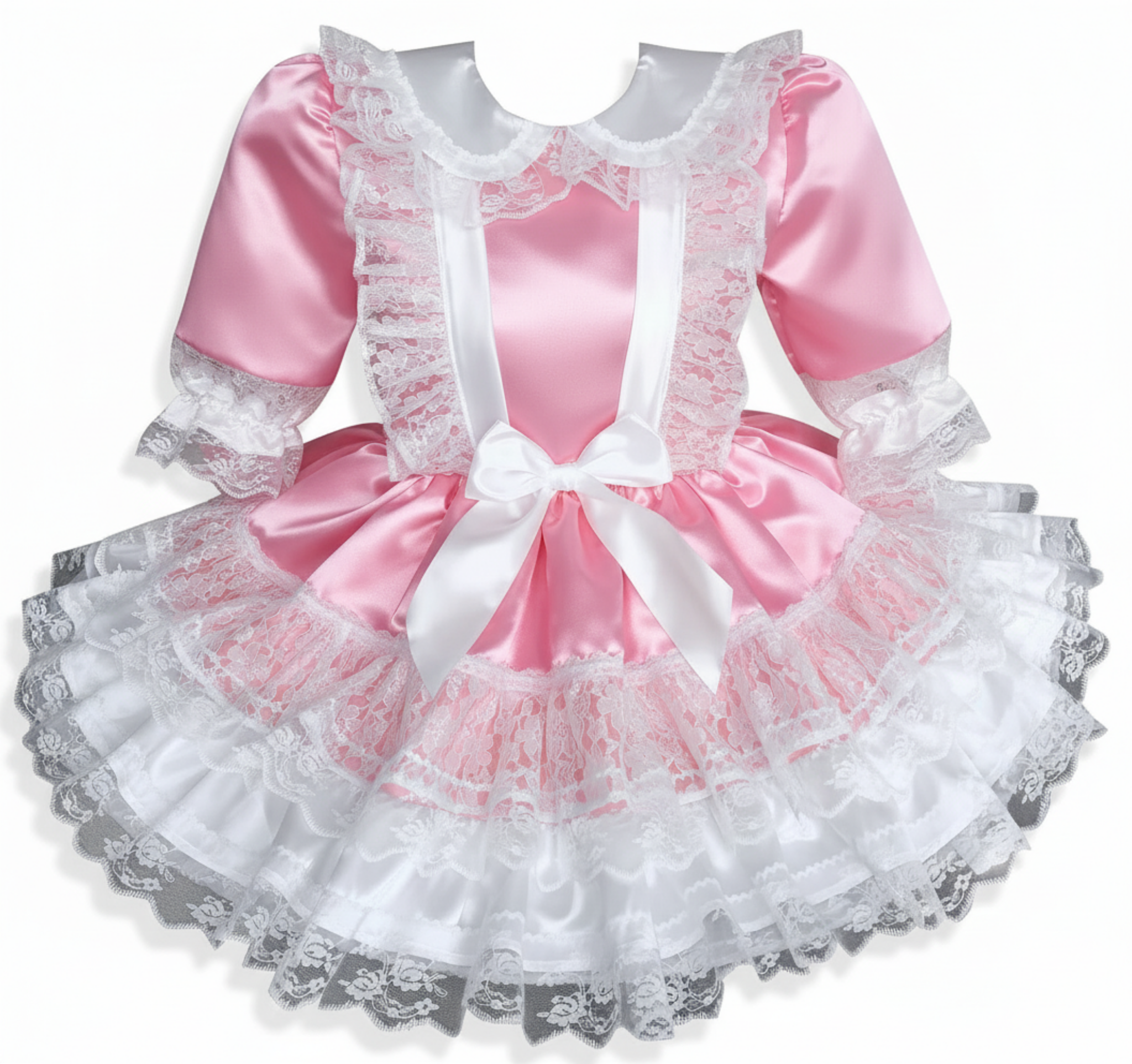 Shyanne Custom Fit Pink White Satin Lace Adult Sissy Dress by Leanne's