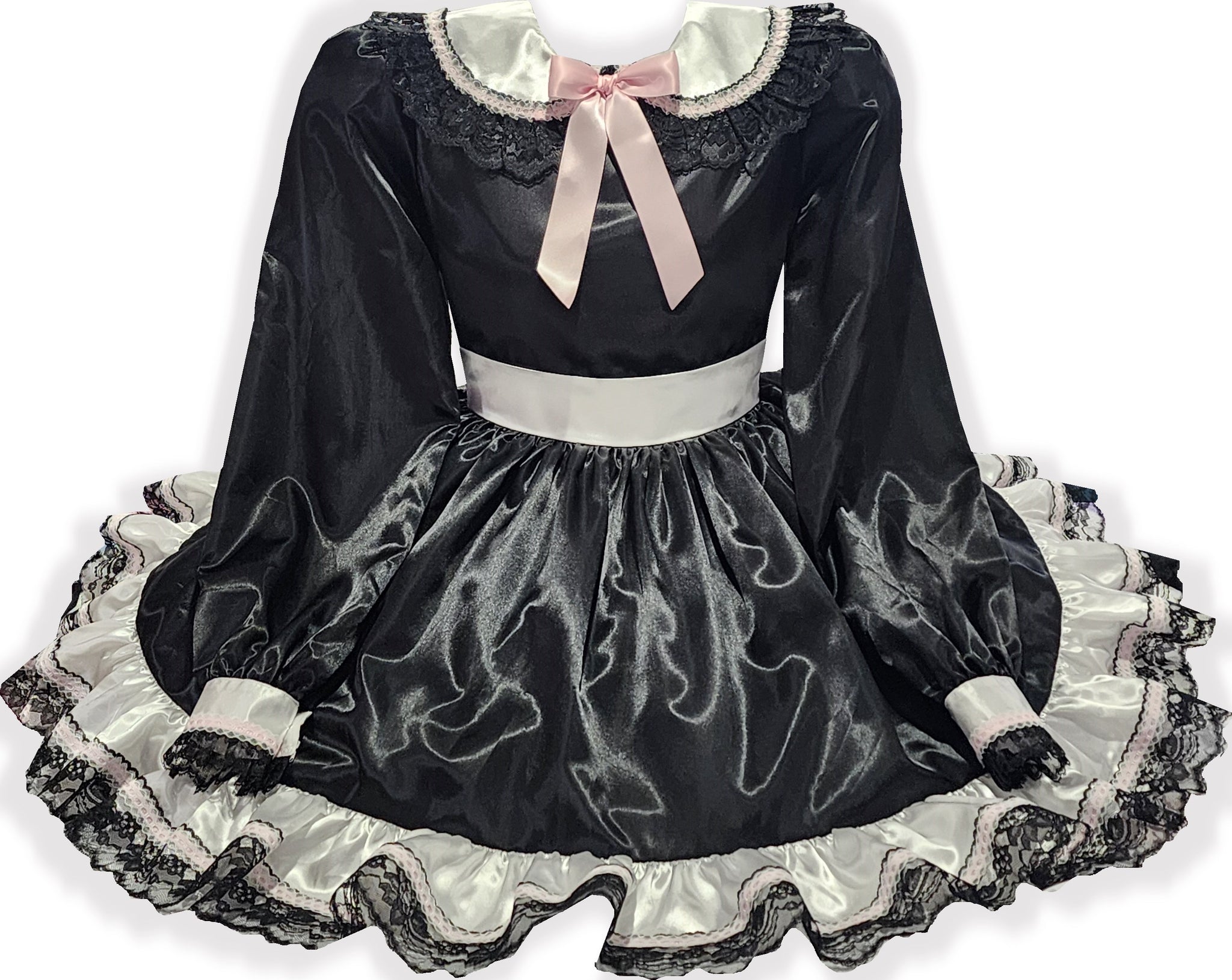 *Full gathered skirt with 1 ruffle trimmed with black lace and pink ribbon
