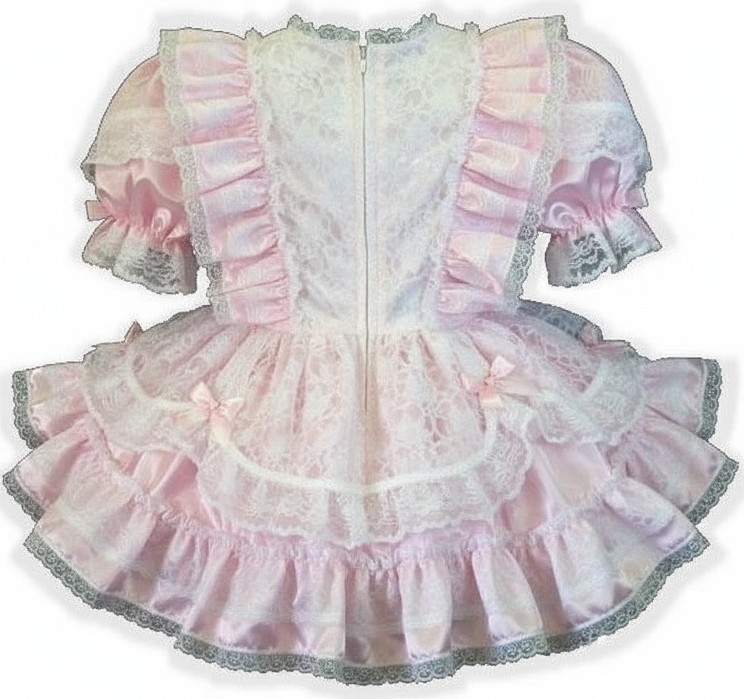 *Made from high quality poly satin in pink with white lace overlay