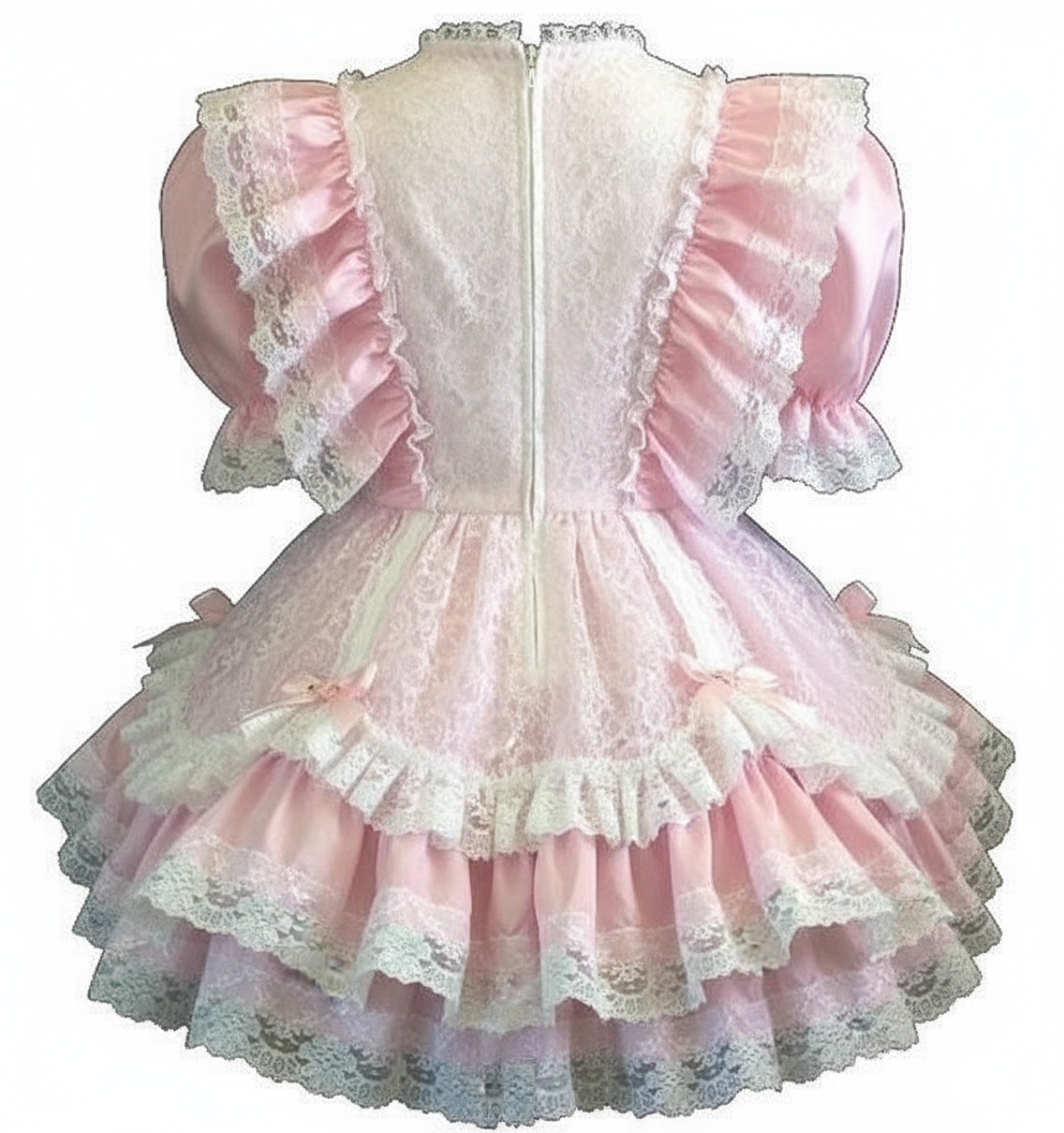 *Trimmed with white lace, pink ribbon, ribbon bows, and ribbon roses
