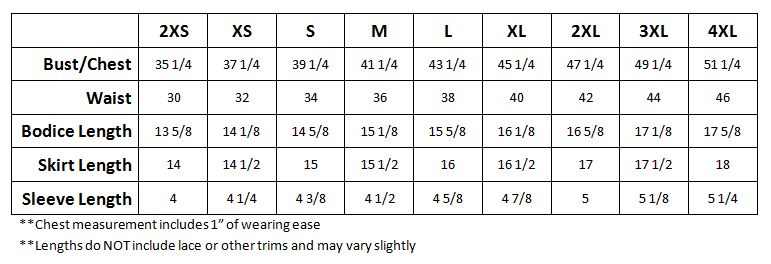 PLEASE COMPARE YOUR BODY MEASUREMENTS TO THE MEASUREMENTS BELOW TO MAKE SURE THIS WILL FIT YOU